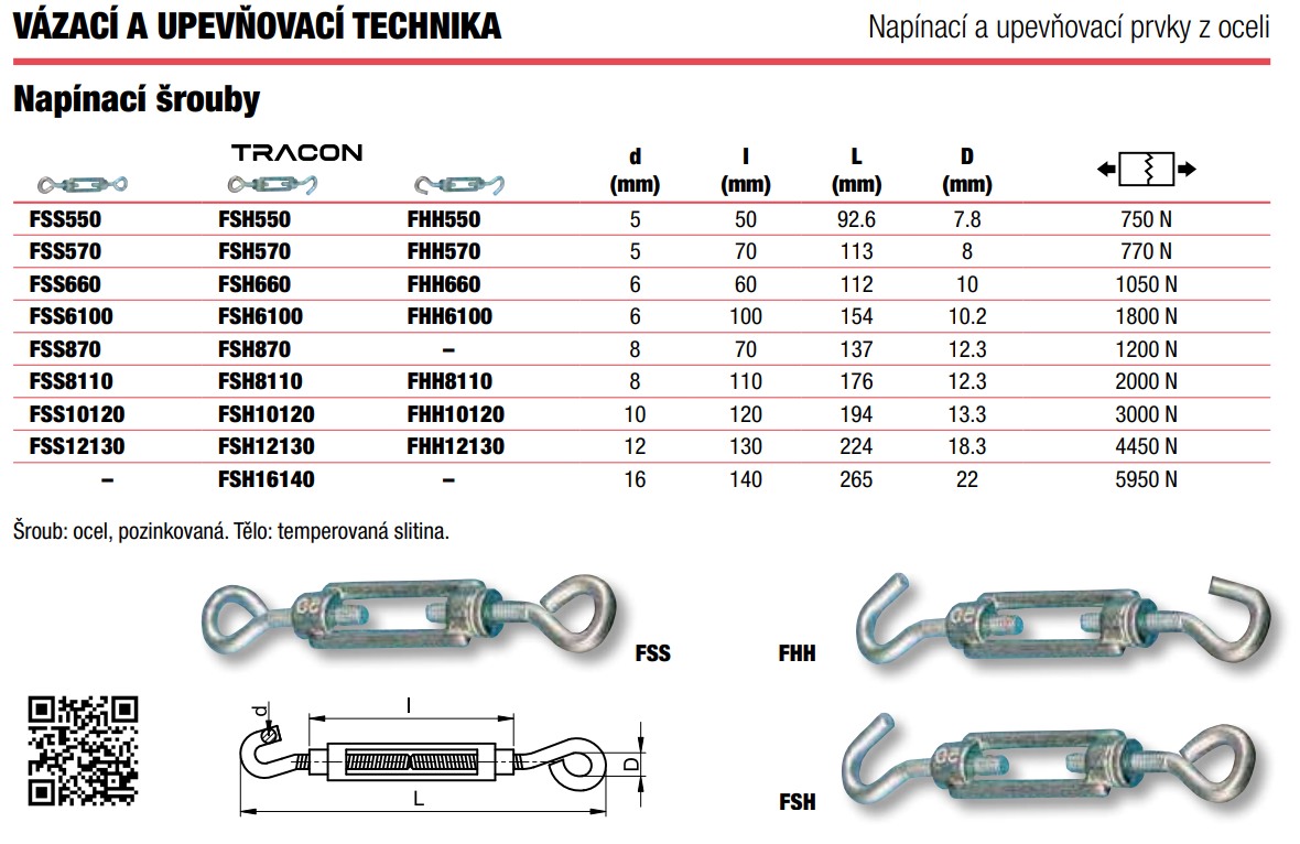 - Tracon FSS660 Napínací šrouby, oko+oko, ocel, temperovaná slitina 6×60mm, 1050N