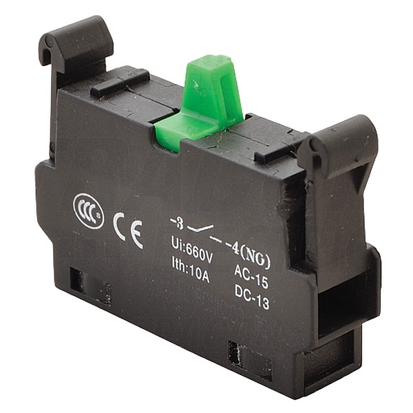 Náhradní spínací kontakt pro ovládací tlačítka série NYG3 s rychloupínací montáží zacvaknutím.