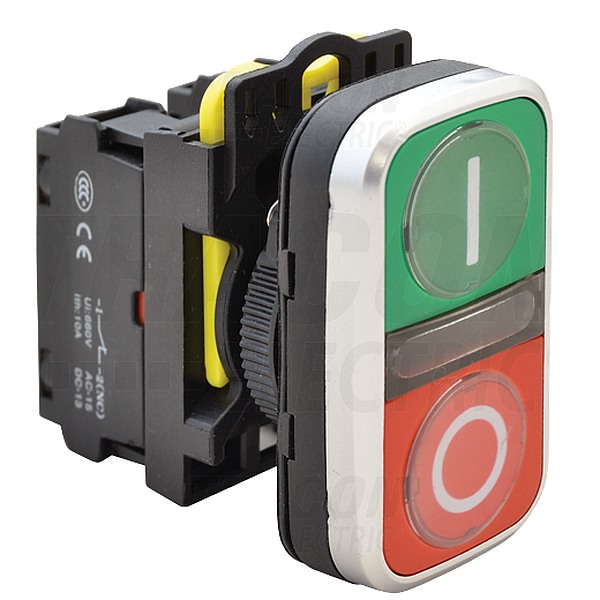 - Tracon NYG3-D1 Dvojtlačítko, I-O,zelené+ červené 1×NO+1×NC, 5A/230V AC-15, IP65