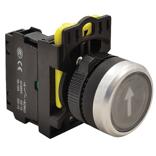 - Tracon NYK3-P4 Tlačítkový spínač s popisemčerný ( bílá šipka ) 1×NO, 5A/230V AC-15, IP65