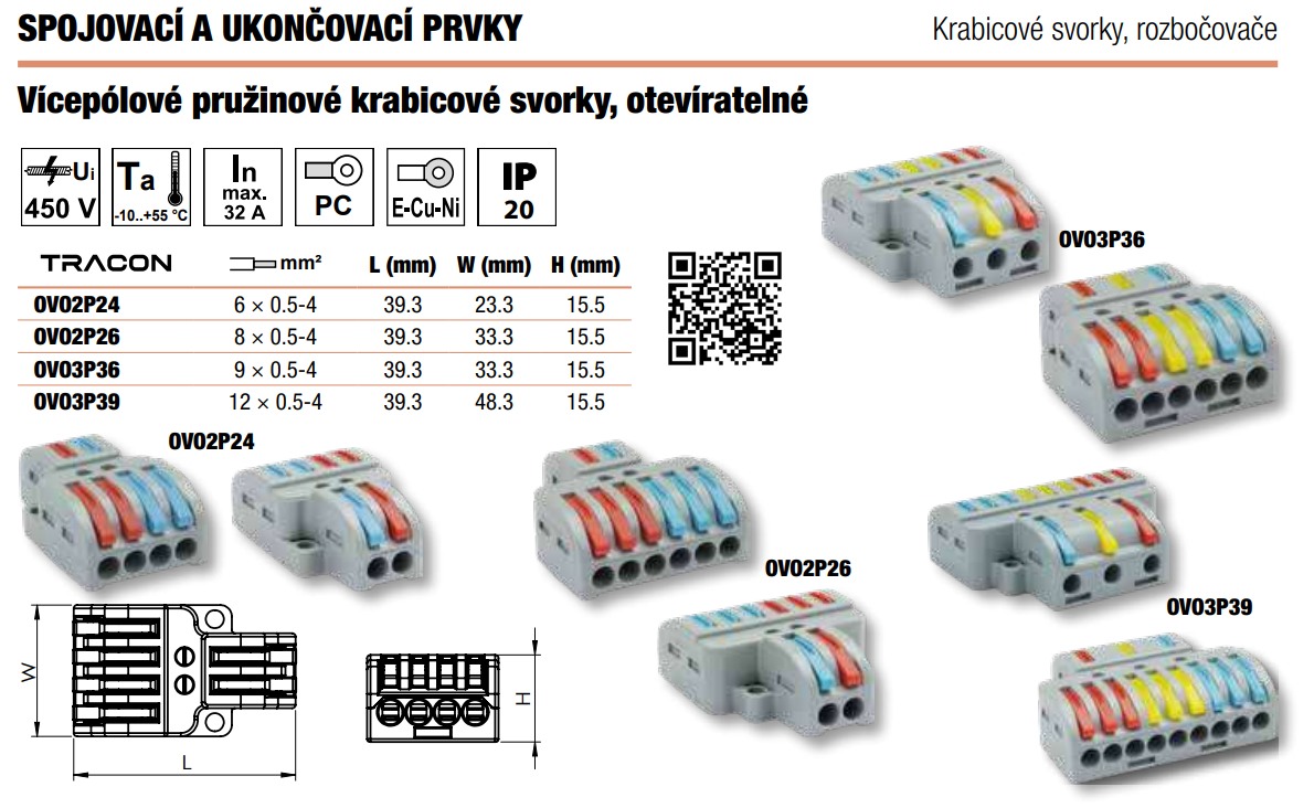 - Tracon OVO3P36 Krabicová svorka pružinová 0,5-4mm2, 32A, 400VAC 3P