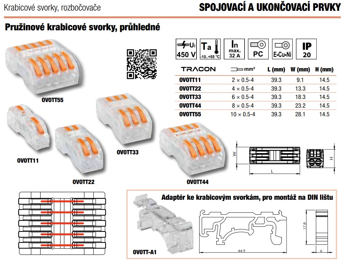- Tracon OVOTT-A1 Adaptér k pruž. krab.svorkám pro montáž na DIN lištu PC