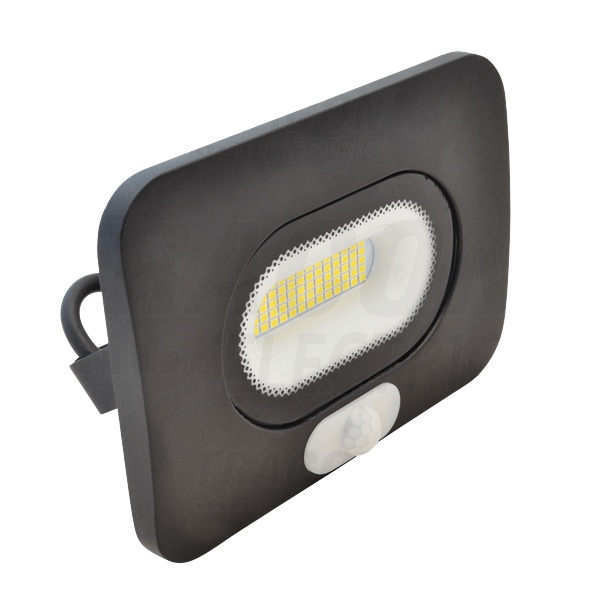 Tracon RSMDLM10 SMD reflektor se snímačem pohybu, černý 220-240V AC, 10W, 4000K, IP65, 800lm, 110°, 3-10m, EEI=G