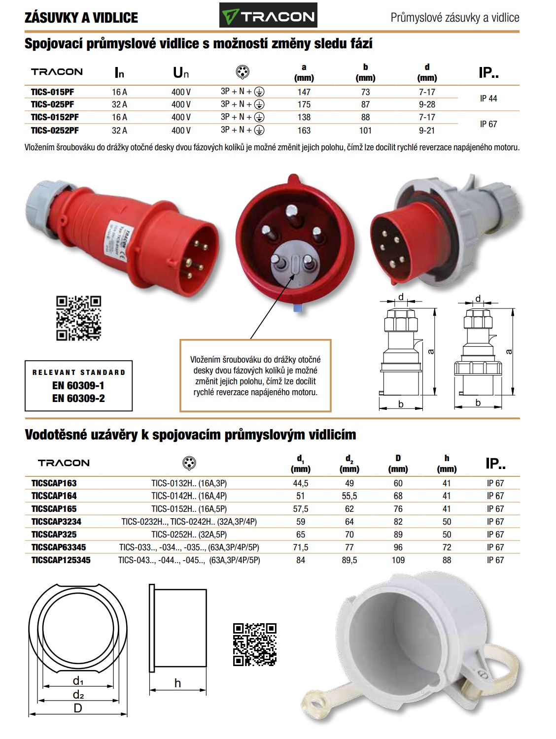 | TICS-015PF | 16 A | 400 V | 137 | 70 | 7-17 | IP 44 |