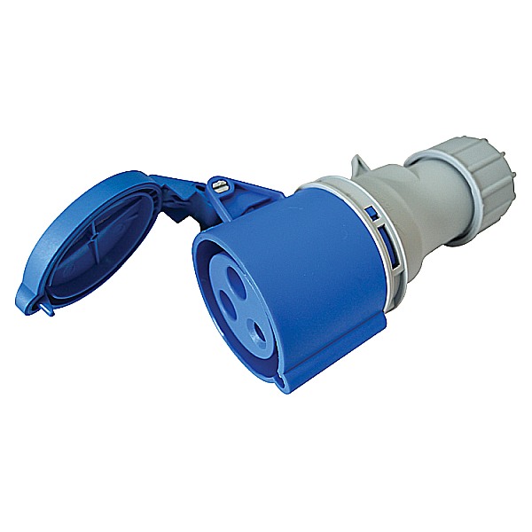 - Tracon TICS-223H Spojovací průmyslová zásuvkas kabelovou přechodkou 32A, 230V, 2P+E, 6h, IP44