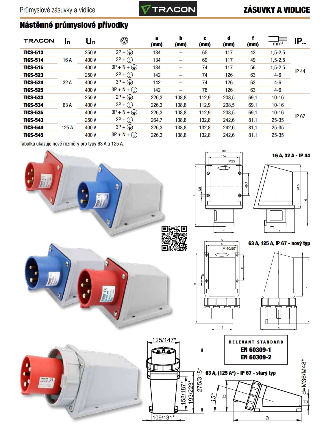 | TICS-524 | 32 A | 400 V | 142 | - | 74 | 126 | 63 | IP 44 |