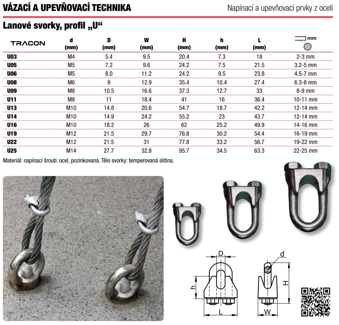 - Tracon U06 Lanová svorka, profil 'U', pozinkovaná ocel d=4,5-7mm, M5