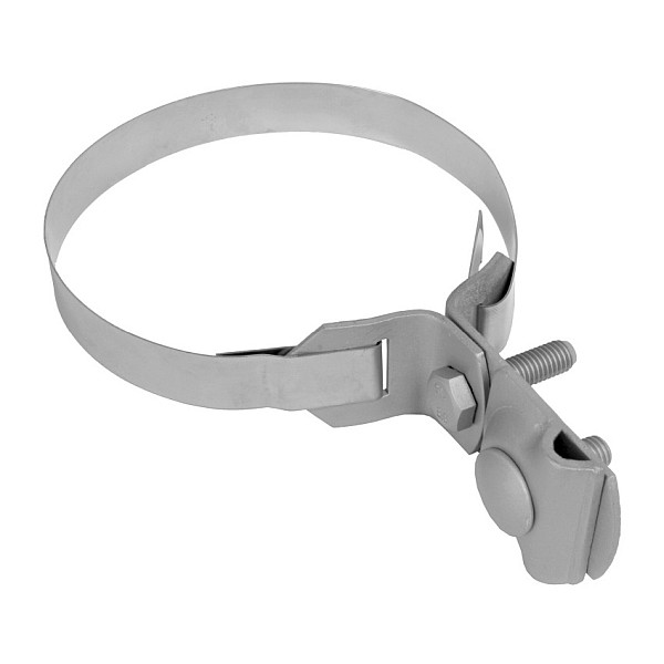 Použití: Připojení okapových svodů ke kruhovému vodiči. Pásek z nerezové oceli je lehce ohebný. Umožňuje univerzální použití svorky pro různé průměry okapových svodů i jiných trubek.