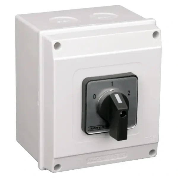 - Vačkový přepínač, 0-1-2, v krabici Tracon TKB-206/4T65 400V, 50Hz, 20A, 2×4P, 5,5kW, 48×48mm, 60°, IP65