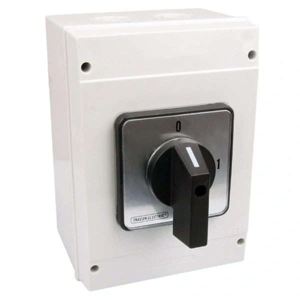 Krabicový vačkový vypínač, ON-OFF Tracon TK-639/4T65 400V, 50Hz, 63A, 4P, 18,5kW, 64×64mm, 90°, IP65