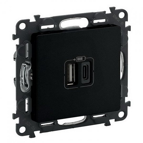 - Valena Life dvojitá nabíječka usb a+c 3A černá Legrand 756306