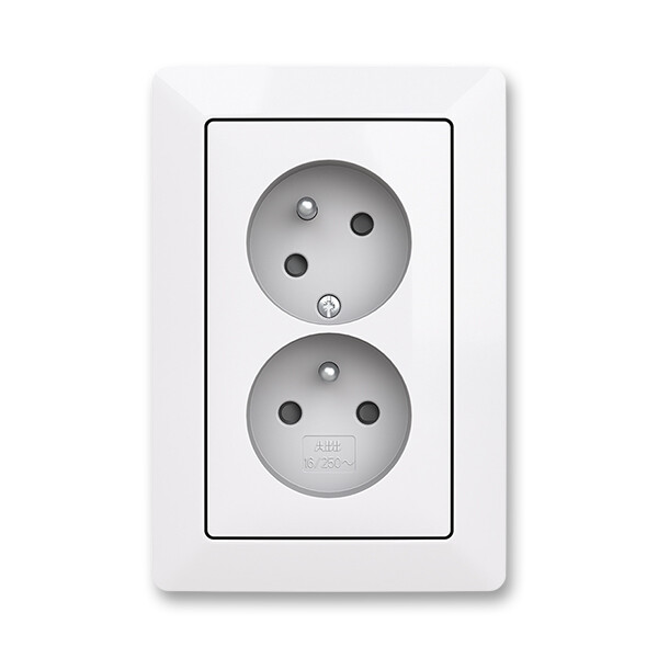 Dvojzásuvka 230V jsou dvě standardní zásuvky nad sebou v jednom těle krytu, její zadní část je uzpůsobena pro montáž do nejběžnějších elektroinstalačních krabic pod omítkou (do zdi) typu KP 68.
