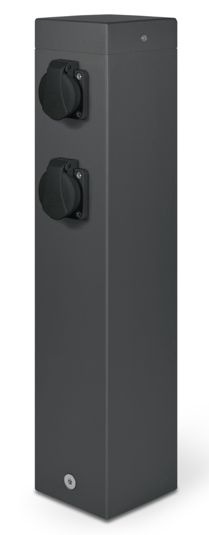 Zásuvkový Energo sloupek SEZ RS-16-2 osazený zásuvkami 2x230 V v barevném provedení lakovaný kov (RAL 7016), krytí IP44, 16A, 400V.